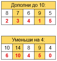 | Дополняю до 10 | Уменьшаю на 4 |