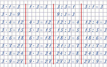 Используя рисунок, вспомни таблицу умножения и деления с числом 3.