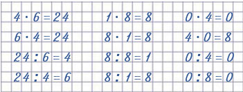 6 • 4 = 24 24 : 4 = 6 8 • 1 = 8