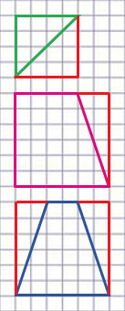 Красным цветом выделены элементы, которые нужно добавить, чтобы из данных фигур получились квадраты.