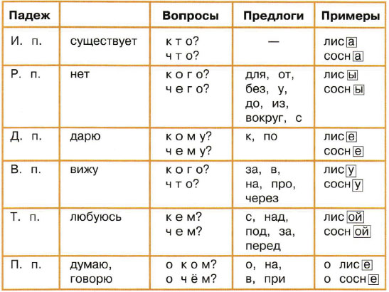 Расскажите всё, что вы знаете об изменении имён существительных по падежам. используйте данную таблицу.