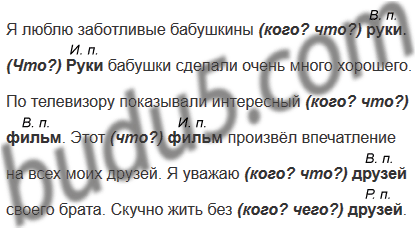 Я люблю заботливые бабушкины руки. Руки бабушки сделали очень много хорошего. По телевизору показывали интересный фильм. Этот фильм произвёл впечатление на всех моих друзей. Я уважаю друзей своего брата. Скучно жить без друзей. Все ребята приняли участие в новой игре. К этой игре все готовились заранее. В нашем классе многие ребята увлекаются компьютерными играми.