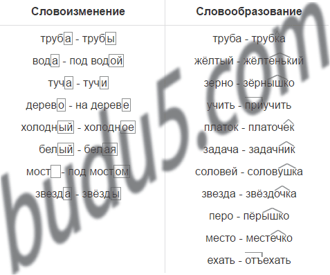 При словоизменении меняются только окончания, при словообразовании происходит образование однокоренных слов с помощью суффиксов и приставок.