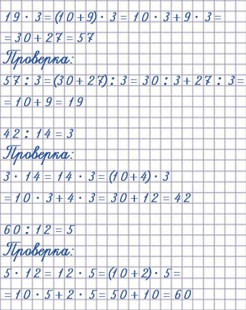 | 52 : 4 = 13 Проверка 13 • 4 = 52 или 52 : 13 = 4 | 19 • 3 = 57 Проверка 57 : 3 = 19 или 57 : 19 = 3 |