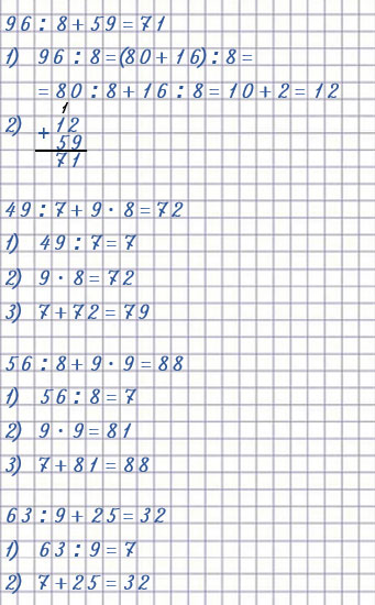 | 54 : 18 = 3 | 96 : 8 + 59 = 71 |
