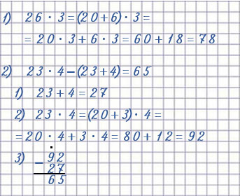 2) Узнай на сколько произведение чисел 23 и 4 больше их суммы.