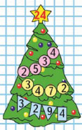 | 4 • 15 + 12 = 72 | 63 : 9 + 25 = 32 |