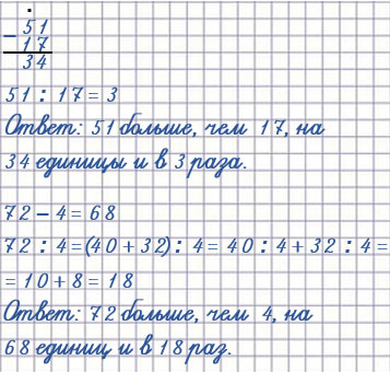 51 больше 17 на 34 единицы и в 3 раза;