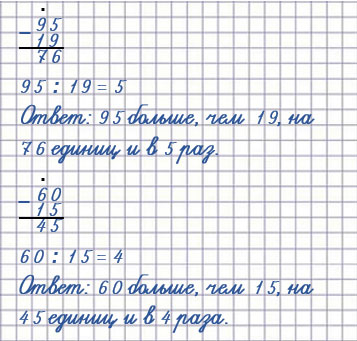 95 больше 19 на 76 единиц и в 5 раз;