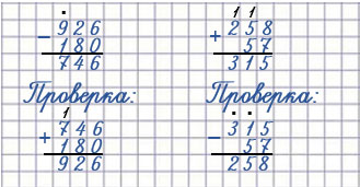 Пишу (единицы под единицами, десятки под десятками, сотни под сотнями): 926 - 180