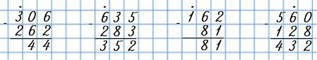 Пишу (единицы под единицами, десятки под десятками, сотни под сотнями): 306 - 262.
