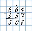 | 864 - 357 = 507 | 610 - 200 + 10 = 420 |