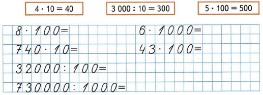 23. Объясни по образцам, как можно умножить или разделить число на 10, 100, и выполни вычисления.
