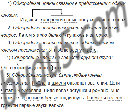 5) Однородными могут быть любые члены предложения или только некоторые?