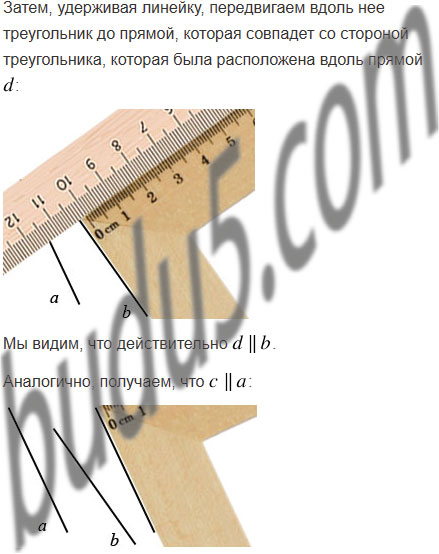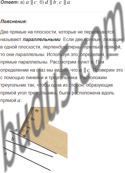 Определите на глаз, а потом проверьте с помощью угольника и линейки, какие из прямых, изображённых на рисунке 174, параллельны.