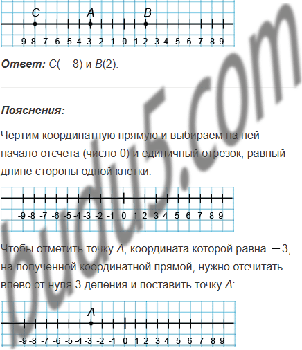 Отметьте на координатной прямой точку А(3). Найдите на этой прямой точки, удалённые от точки А на пять единичных отрезков, и укажите их координаты.
