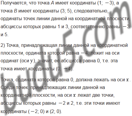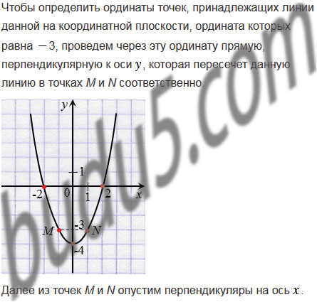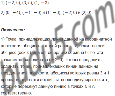 1) Найдите ординату точки, принадлежащей этой линии, абсцисса которой равна: