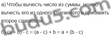 "Чтобы вычесть число из суммы, можно ... его из одного слагаемого и ... второе слагаемое".