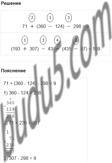 | 71 + (360 - 124) - 298 | (193 + 307) - 43 - (435 - 87) |
