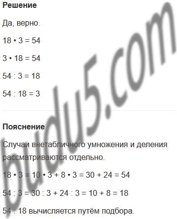 Задание № 10. Пчела Майя решила пример: 18 • 3 = 54. Верно ли она нашла произведение? Какие ещё равенства можно составить из чисел 18, 3, 54?