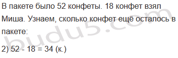 Задание № 9. В пакете было 52 конфеты. В течение 6 дней Миша брал из пакета каждый день по 3 конфеты. Сколько конфет ещё осталось в пакете?