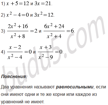 1. Какие уравнения называют равносильными.