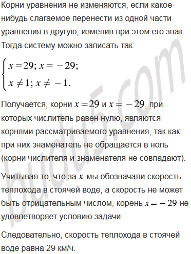 Теплоход прошел 28 км против течения реки и вернулся обратно, потратив на обратный путь на 4 мин меньше. Найдите скорость теплохода в стоячей воде, если скорость течения реки равна 1 км/ч.