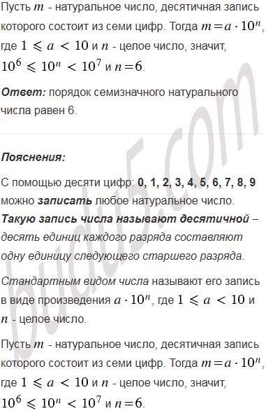 Десятичная запись некоторого натурального числа состоит из семи цифр. Чему равен порядок этого числа?