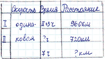Задание № 63. Автомобиль проехал с одинаковой скоростью в первый день 960 км, а во второй - 720 км. В первый день он был в пути на 3 ч больше, чем во второй день. Какое расстояние он проедет за 7 ч, двигаясь с той же скоростью?