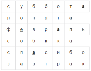 Прочитайте. Впишите в пустые клетки слова, соответствующие данным значениям.