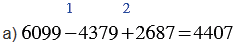 а) 6099 - 4379 + 2687;