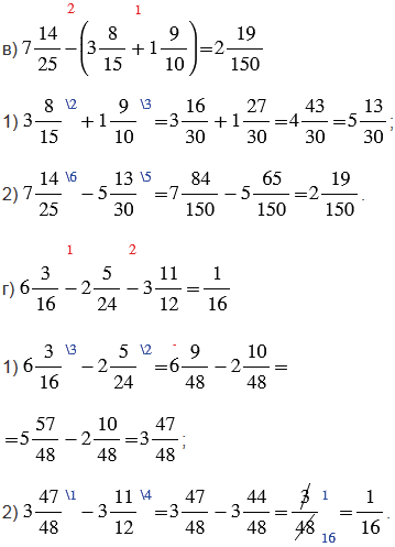 3) если дробная часть уменьшаемого меньше дробной части вычитаемого, то надо превратить ее в неправильную дробь, уменьшив на единицу целую часть, и выполнить вычитание по пункту 2;