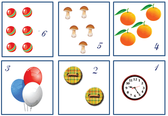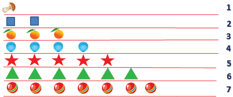 Например, сравни количество грибов и мячиков.